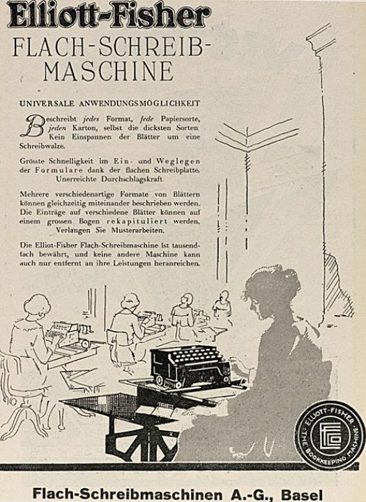 Werbeanzeige für Buch-Schreibmaschine Elliott-Fisher monochrom