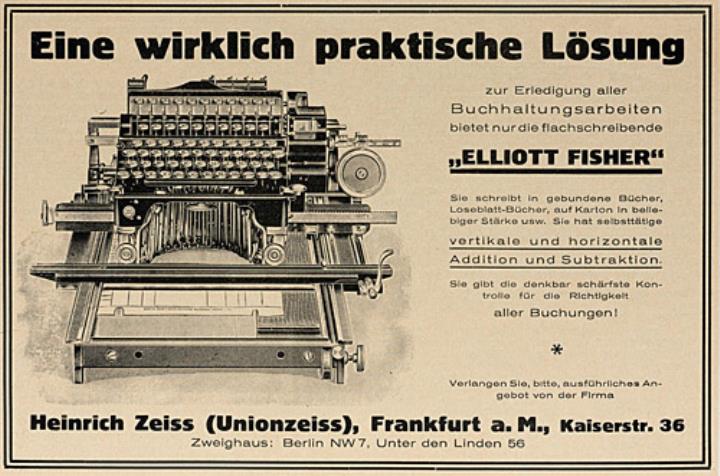 Werbeanzeige für Buch-Schreibmaschine Elliott-Fisher monochrom