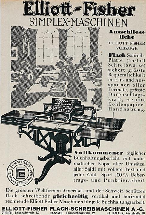 Werbeanzeige für Buch-Schreibmaschine Elliott-Fisher monochrom
