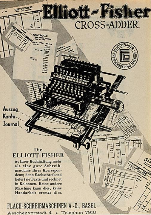 Werbeanzeige für Buch-Schreibmaschine Elliott-Fisher monochrom