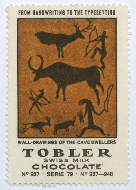 Reklamemarke/Werbemarke einer Serie (Tobler Schokolade); rechteckig, polychrom Serie 79, Nr. 937. Wall-Drawings of the Cave Dwellers