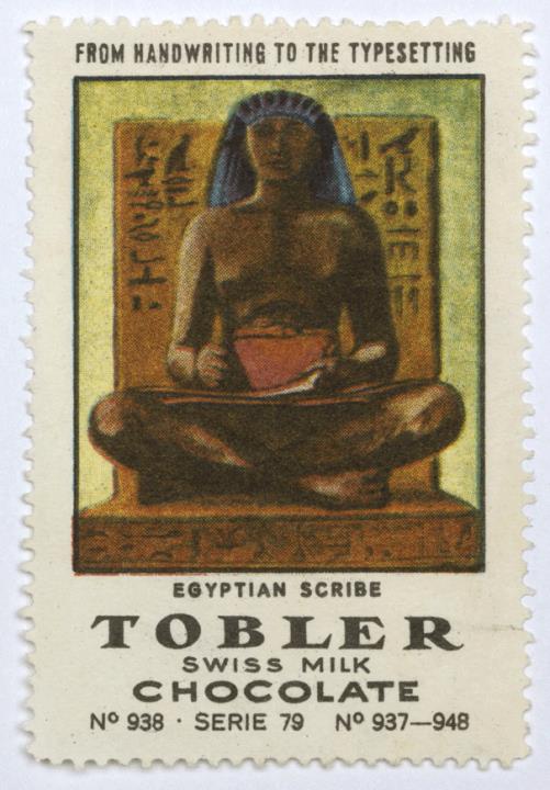 Reklamemarke/Werbemarke einer Serie (Tobler Schokolade); rechteckig, polychrom Serie 79, Nr. 938. Egyptian Scribe