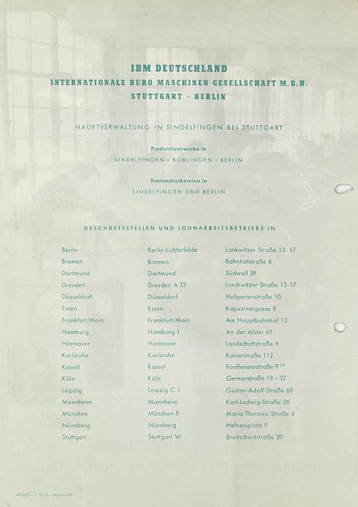 Prospekt für IBM Deutschland Internationale Büro Maschinen Gesellschaft m.b.H. Nr. 4/792/22 - 1.10.51 Grafik: SH