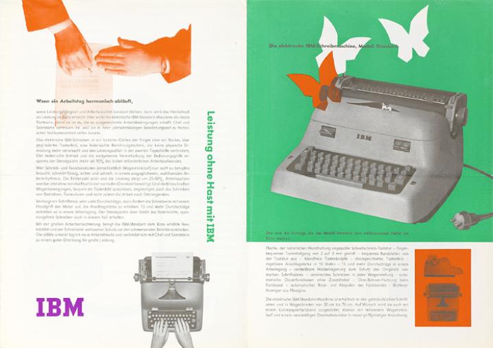 Faltprospekt für elektrische Schreibmaschine IBM Standard Nr. 45040 4.57 Kie.