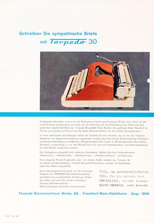 Prospekt für tragbare Schreibmaschine Torpedo 18 und Torpedo 30 Nr. d267.30.362