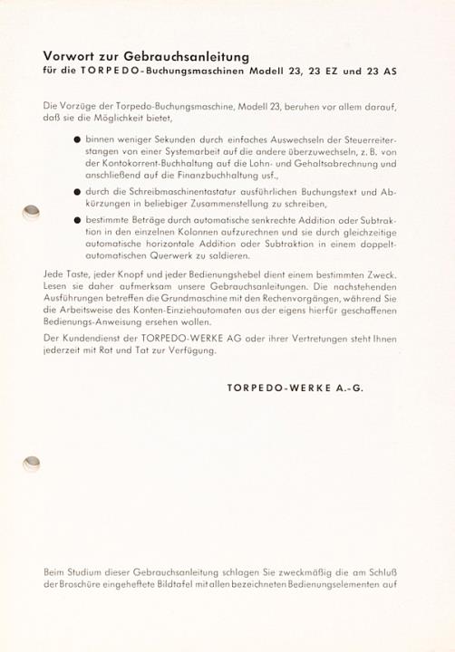 Bedienungsanleitung für Schreib- und Buchungsmaschine Torpedo 23/R11