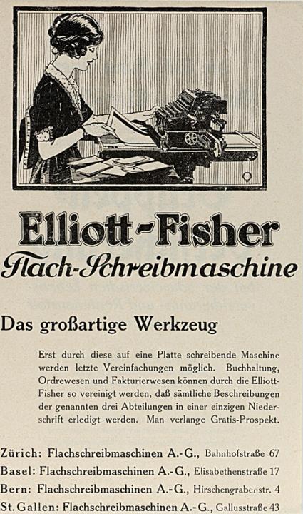 Werbeanzeige für Buch-Schreibmaschine Elliott-Fisher monochrom