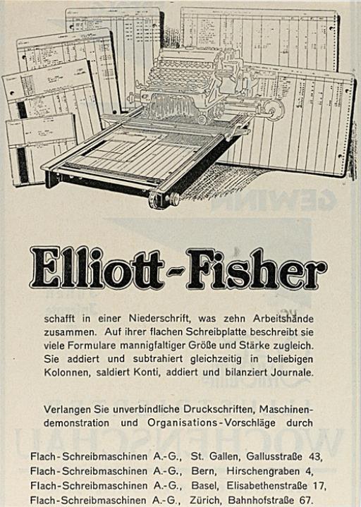 Werbeanzeige für Buch-Schreibmaschine Elliott-Fisher monochrom