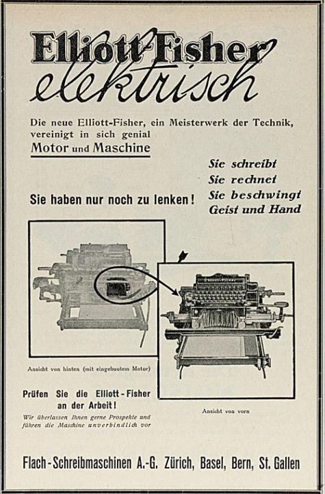 Werbeanzeige für Buch-Schreibmaschine Elliott-Fisher monochrom