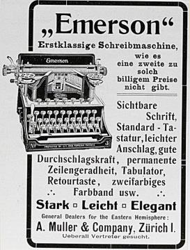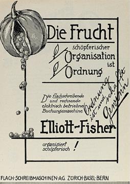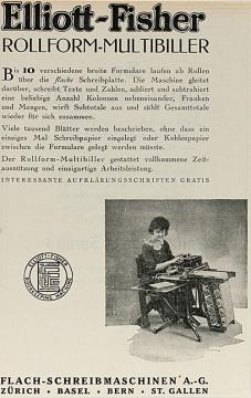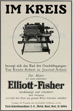 Werbeanzeige für Buch-Schreibmaschine Elliott-Fisher monochrom