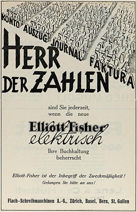 Werbeanzeige für elektrische Buch-Schreibmaschine Elliott-Fisher monochrom