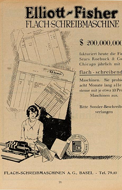 Werbeanzeige für Buch-Schreibmaschine Elliott-Fisher monochrom
