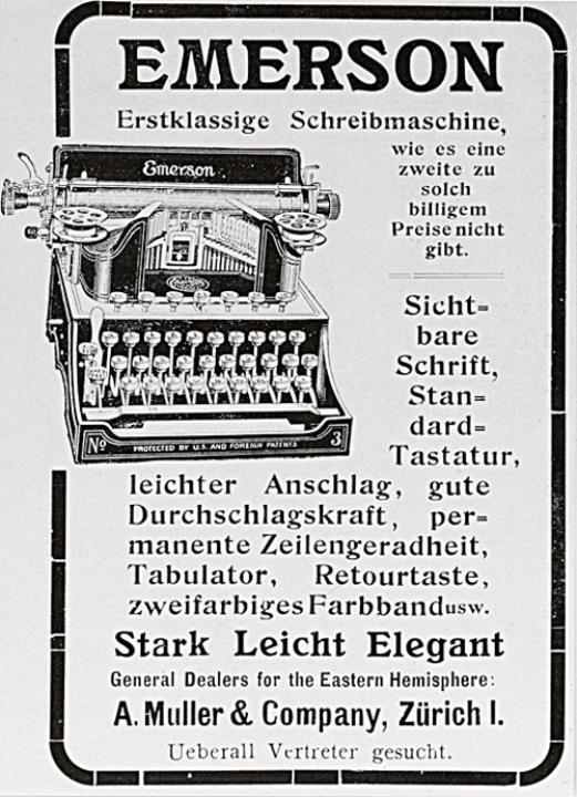 Werbeanzeige für Schreibmaschine Emerson monochrom