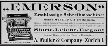 Werbeanzeige für Schreibmaschine Emerson monochrom