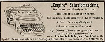 Werbeanzeige für Schreibmaschine Empire monochrom