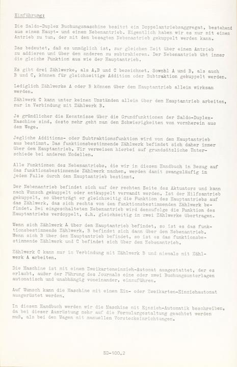 Handbuch mit Bedienungsanleitung für Schreib- und Buchungsmaschine Torpedo Saldo-Duplex Nr. SD-100