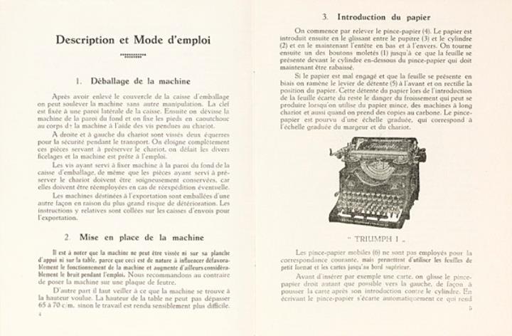 Instructions relatives à l'emploi de la Machine à écrire Triumph