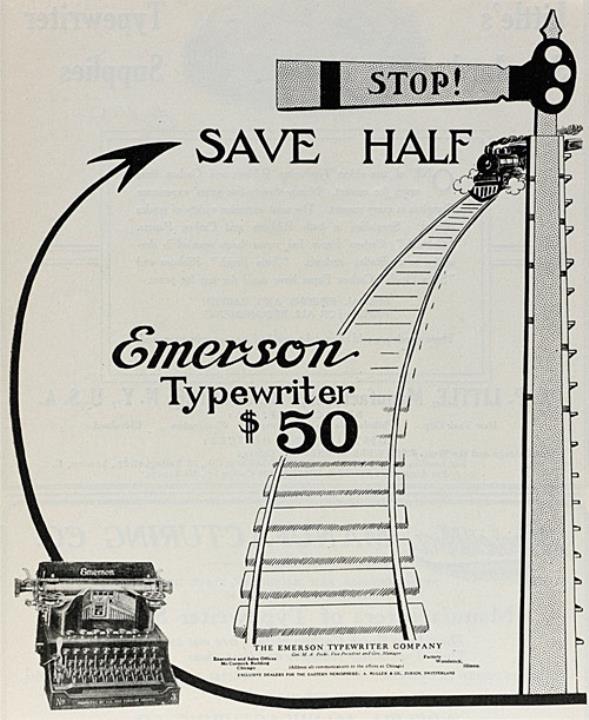 Werbeanzeige für Schreibmaschine Emerson monochrom