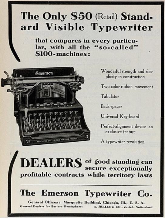 Werbeanzeige für Schreibmaschine Emerson monochrom