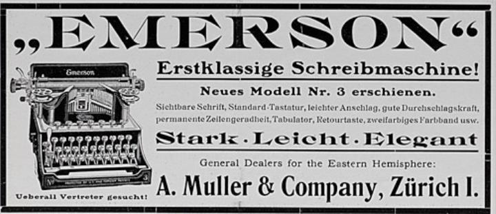 Werbeanzeige für Schreibmaschine Emerson monochrom