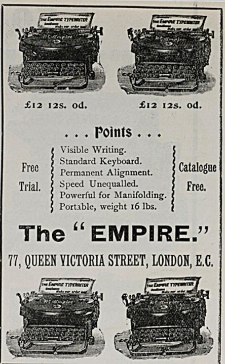Werbeanzeige für Schreibmaschine Empire monochrom