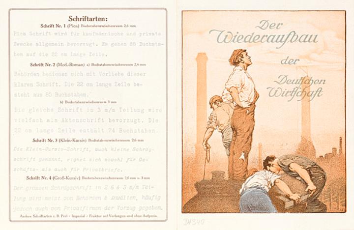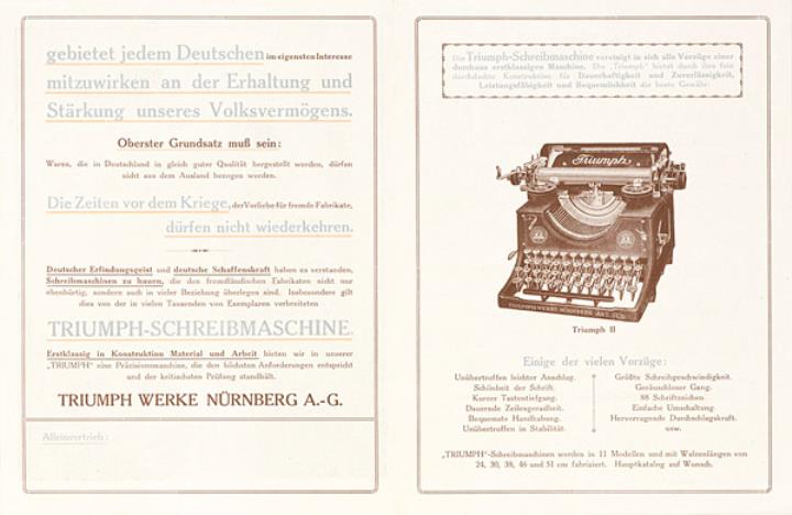 Faltprospekt für Schreibmaschine Triumph 2 mit Schriftartenverzeichnis