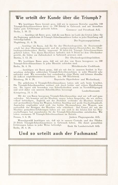 Prospekt für Schreibmaschine Triumph
