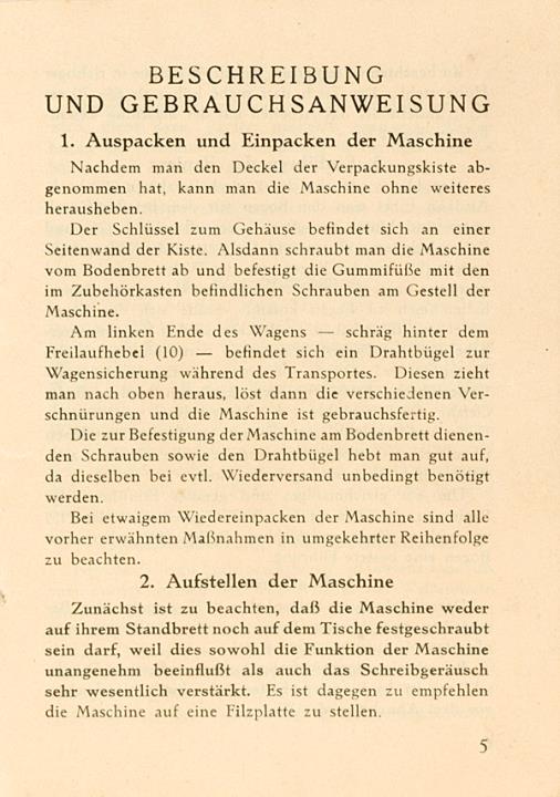 Beschreibung und Gebrauchsanweisung Triumph Schreibmaschine Modell 10