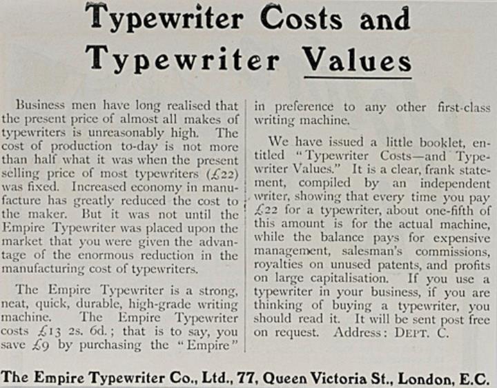 Werbeanzeige für Schreibmaschine Empire monochrom