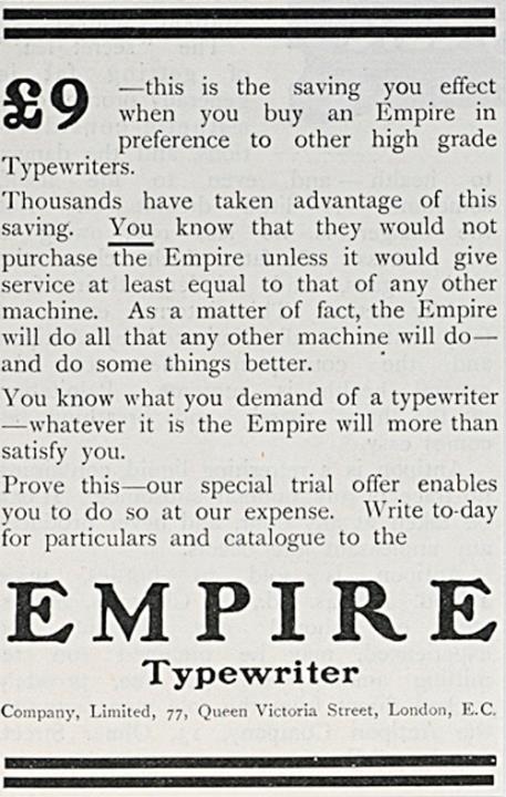 Werbeanzeige für Schreibmaschine Empire monochrom