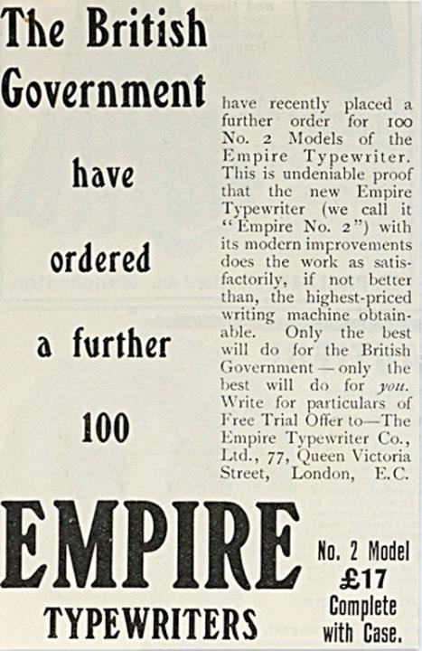 Werbeanzeige für Schreibmaschine Empire monochrom