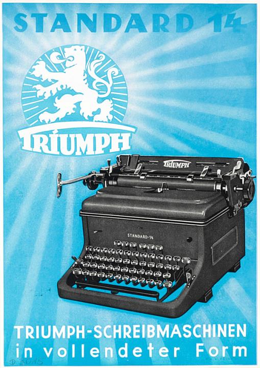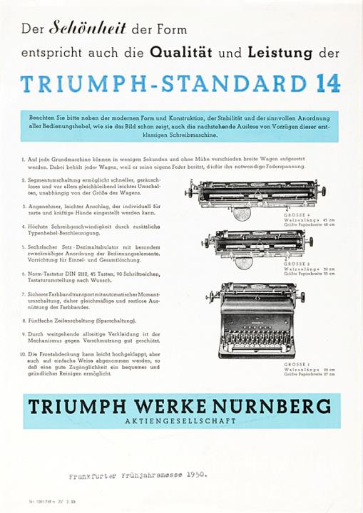 Prospekt für Schreibmaschine Triumph Triumph-Schreibmaschinen in vollendeter Form Nr. 1001/749n mit maschinenschriftlichem Vermerk
