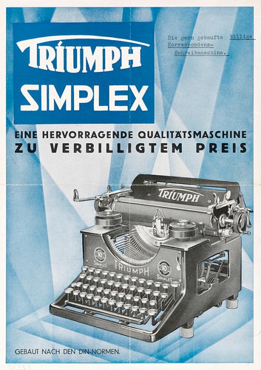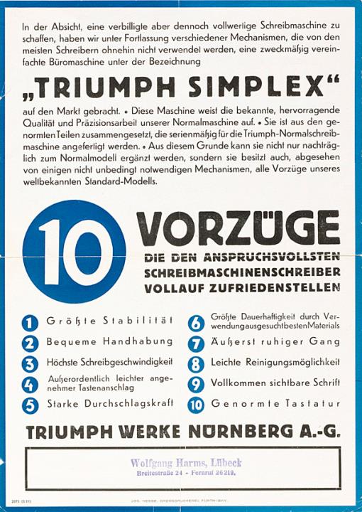 Prospekt für Schreibmaschine Triumph 10 Simplex Eine hervorragende Qualitätsmaschine zu verbilligtem Preis Nr. 2075 (5 31)