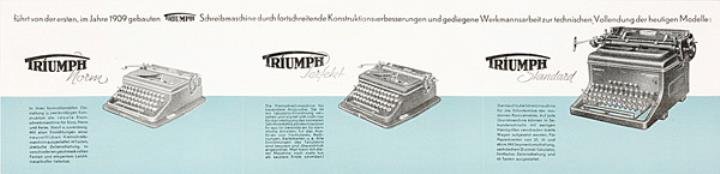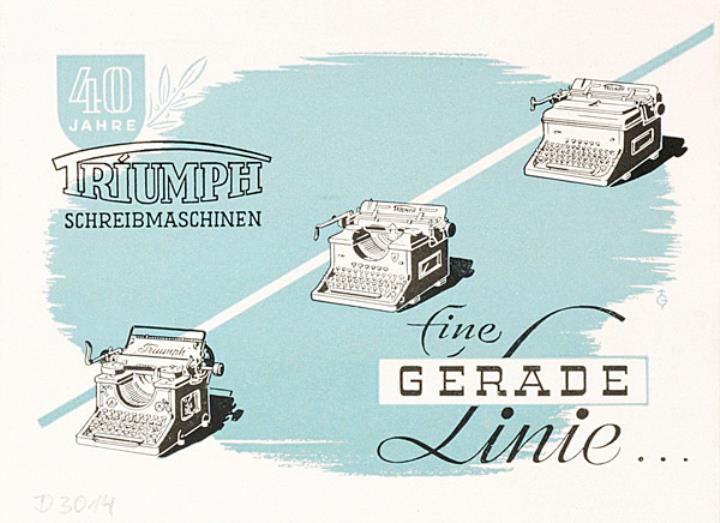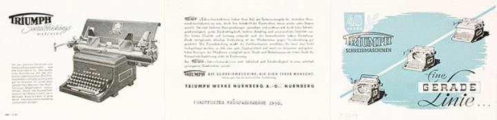 Faltprospekt für Schreibmaschine Triumph Eine gerade Linie... Nr. 1007/12 49 mit maschinenschriftlichem Vermerk
