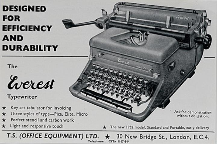 Werbeanzeige für Schreibmaschine Everest monochrom, zwei Exemplare