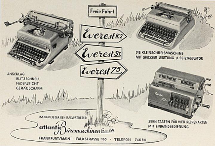 Werbeanzeige für Schreibmaschinen und Rechenmaschine Everest monochrom