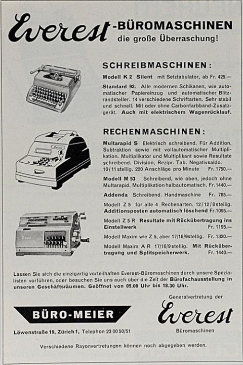 Werbeanzeige für Schreibmaschine und Rechenmaschine Everest monochrom