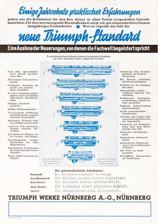 Prospekt für Schreibmaschine Triumph Standard mit Segment-Umschaltung Nr. 3018 (336)