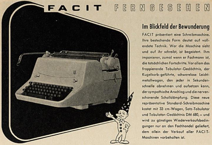 Werbeanzeige für Schreibmaschine Facit monochrom