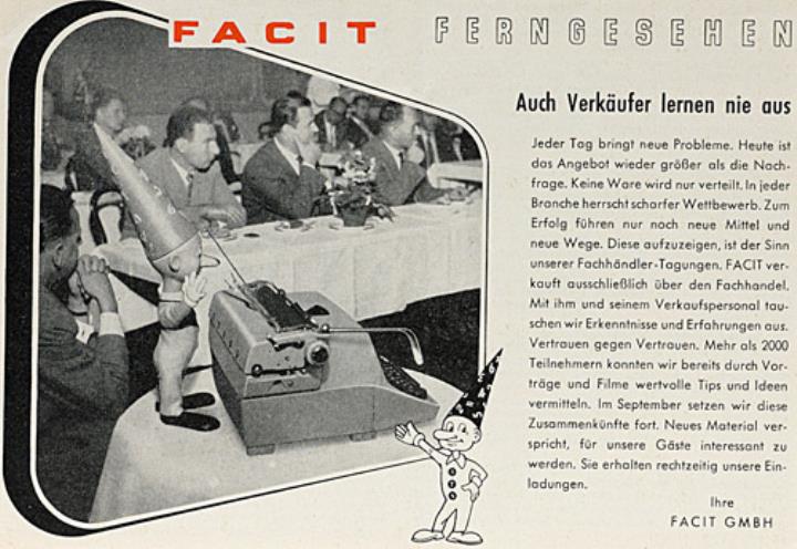 Werbeanzeige für Schreibmaschine Facit polychrom
