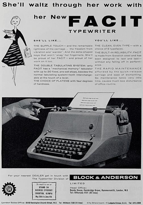 Werbeanzeige für Schreibmaschine Facit monochrom, zwei Exemplare