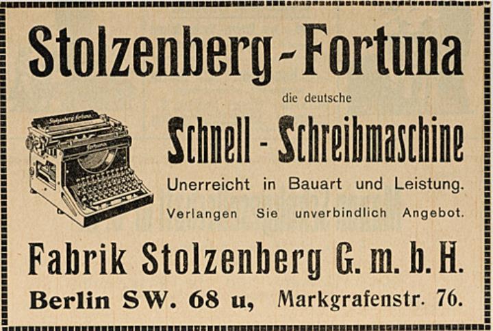 Stolzenberg-Fortuna die deutsche Schnell-Schreibmaschine
