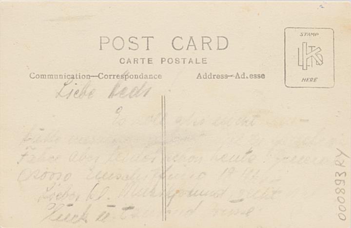 Illustrierte Postkarte; Fotografie, monochrom Rückseite: Mann mit Schreibmaschine und Buch Vorderseite beschrieben