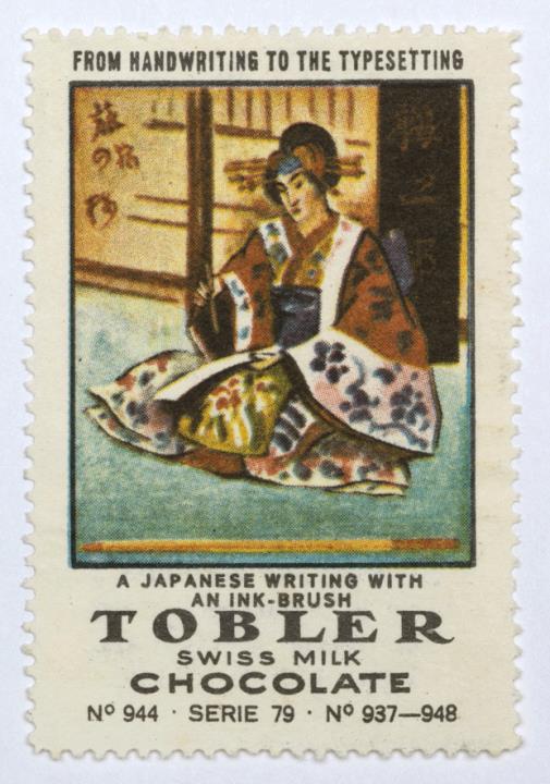 Reklamemarke/Werbemarke einer Serie (Tobler Schokolade); rechteckig, polychrom Serie 79, Nr. 944. A Japanese Writing with an Ink-Brush