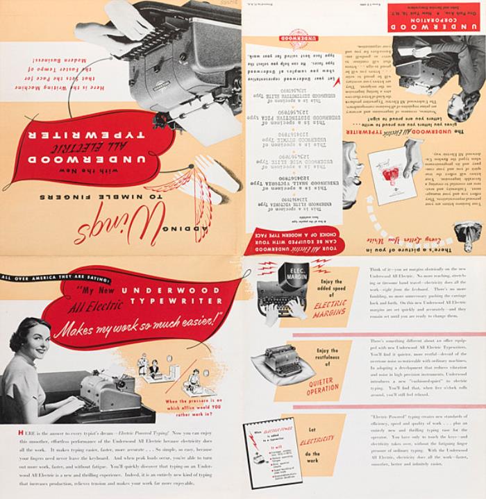 Faltprospekt für elektrische Schreibmaschine Underwood Nr. UE 6006