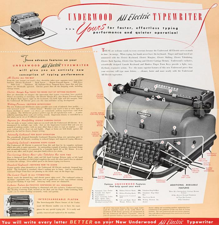 Underwood, Elektrische Schreibmaschine, Typenhebel