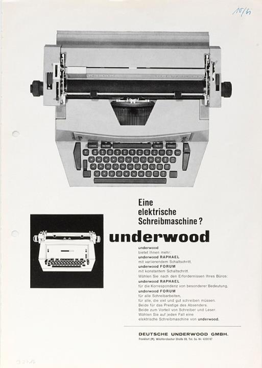 Prospekt für elektrische Schreibmaschine Underwood Datum handschriftlich vermerkt