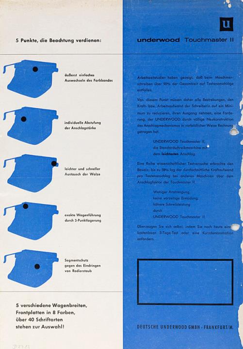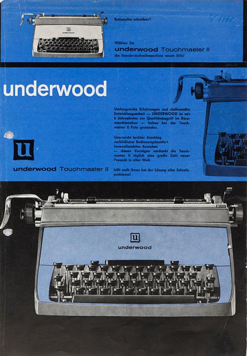 Prospekt für Schreibmaschine Underwood Touchmaster II Datum handschriftlich vermerkt