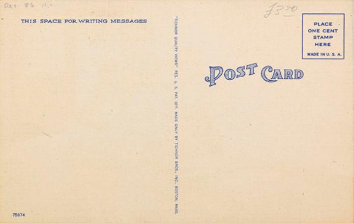 Illustrierte Postkarte; Grafik, polychrom; Nr. 75874 Rückseite: Büroszene; Ehefrau und Vorgesetzter, Sekretärin mit Schreibmaschine Vorderseite nicht beschrieben