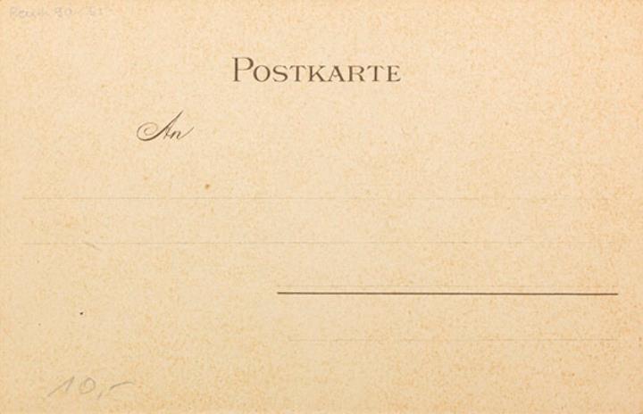 Illustrierte Postkarte; Grafik, polychrom Gemiethliche Bostkarten II. Serie Rückseite: Sekretärin mit Schreibmaschine, darüber Kinder und alte Frau mit Fahrrädern, dekorative Ranke mit Glühlampen; Leerraum zur Beschriftung Vorderseite nicht beschrieben